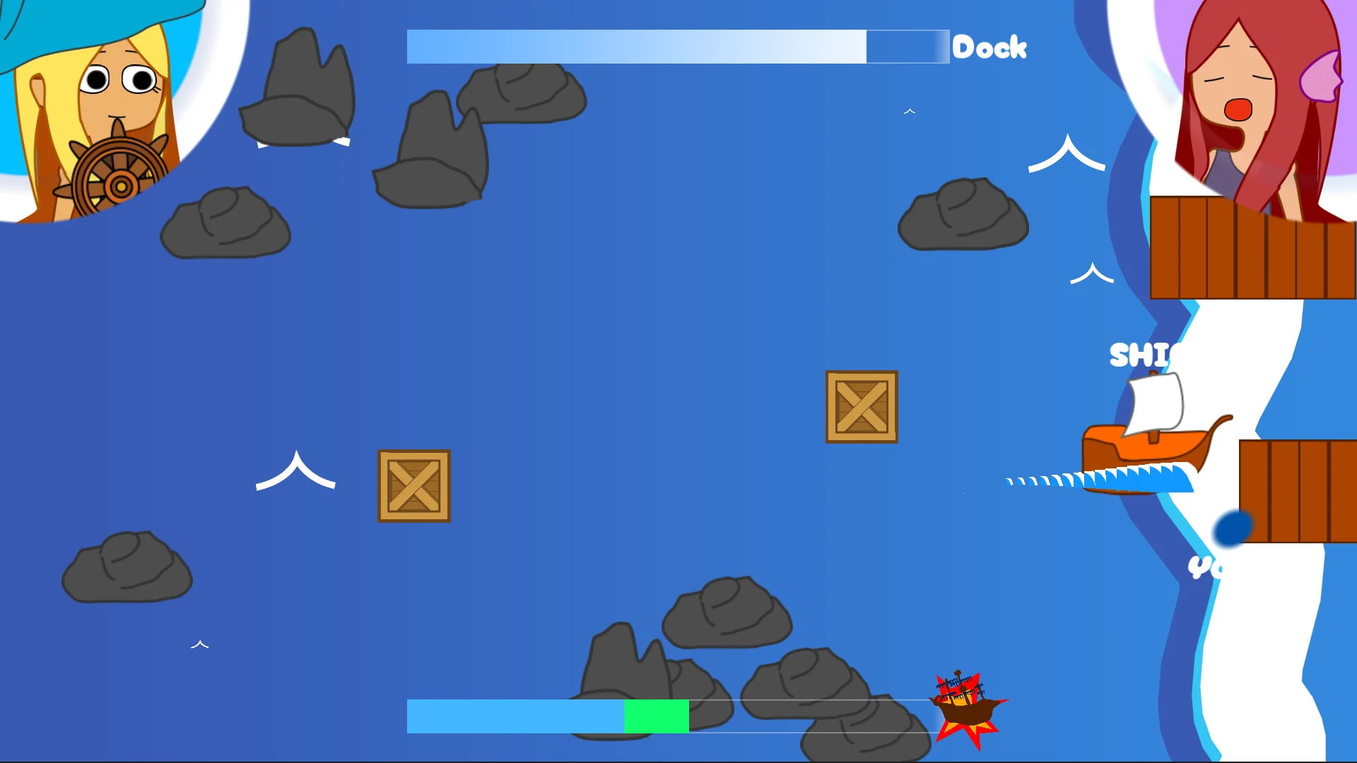 While the main mechanic in only half implemented (the captain is always distracted, so you're never penalized), feel free to enjoy the music, the single stage chaos, the game over screen vibes (lol) when you do not sink the ship and finaly the epilogue/ending in the main menu.